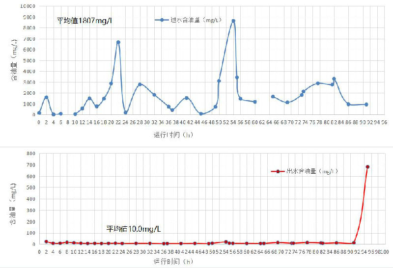 进水含油量:80~8600mg/L,均值在1800mg/L;